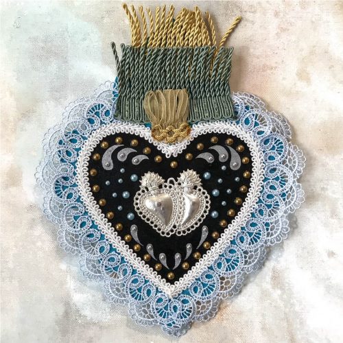 CUORE IN LEGNO PASSAMANERIE E APPLICAZIONI ARGENTO