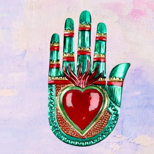 MANO EX-VOTO CON CUORE SACRO – VERDE